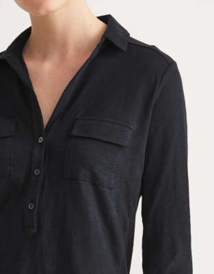 Cotton Half Button Long Sleeve Jersey Shirt Women's Shirts & Blouses